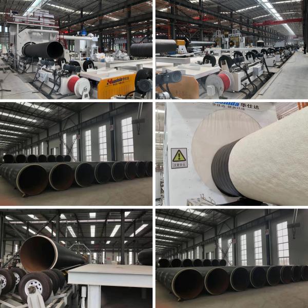 Polyurethane spraying Polyethylene winding pre insulation pipe production line, developed independently by HUASHIDA company, owns a number of national patents. According to the third-party standardization evaluation, the technical advancement level is level 5, reaching the domestic advanced level. It won the title of the first set of technical equipment in Shandong Province. The unit adopts continuous spraying or intermittent spraying production process. High degree of automation, fast production efficiency, saving raw materials, foaming closed cell rate increased, water absorption reduced, trinity molding, more reliable performance. Low carbon environmental protection and higher economic and social benefits.